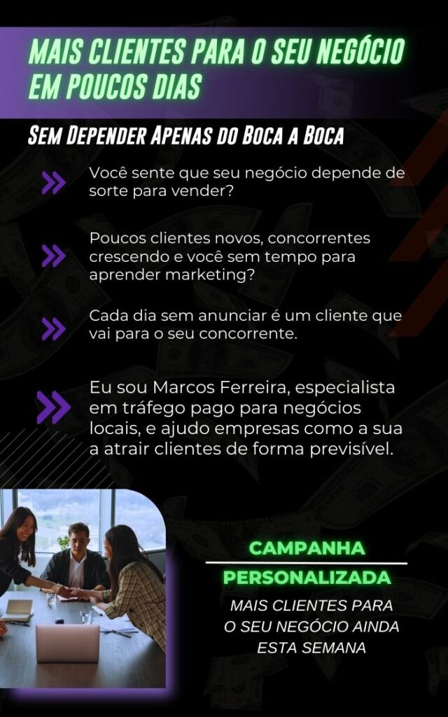Sim! Funciona para salões, clínicas, academias, hamburguerias, lojas de roupas, pet shops, escolas, oficinas e qualquer empresa que precise atrair clientes na sua região.